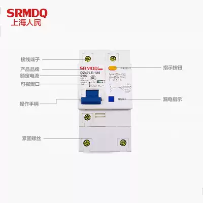 DZ47LE-125 three-phase four-wire leakage circuit breaker 1P 2P 3P N100A125A high-power overload leakage protection