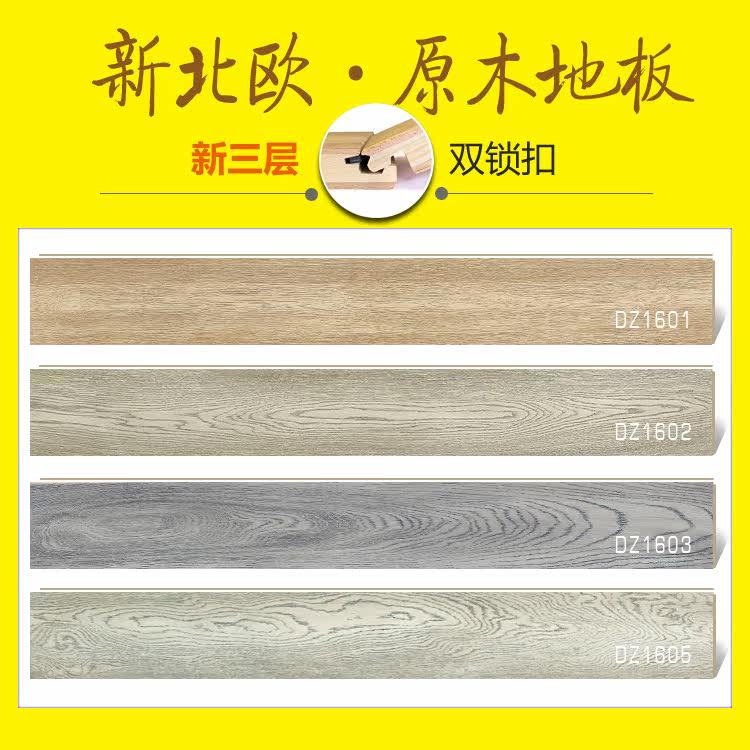 Nordic oak Gris three-layer solid wood composite wood floor household double lock E0 environmental protection factory direct sales 15mm