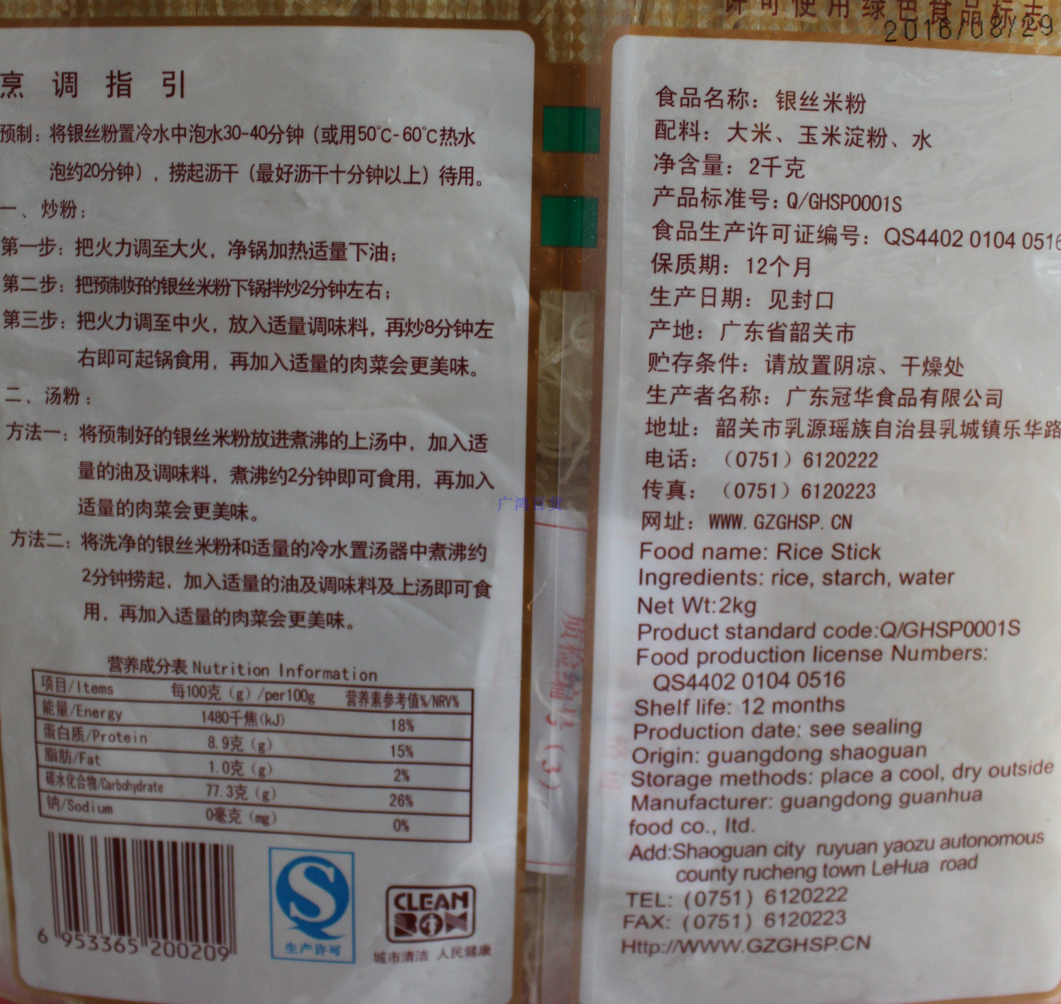 Guangdong Hakka Special Products Crown Hwa Silver Silk Rice Flour Crown Lean Rice Flour Fine Rice Noodles Rice Flour 2KG* 2 Bag