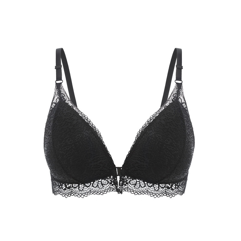 Front buckle bra Girl beauty back incognito underwear Female thin cup section no rim sexy breathable lace halter small bra