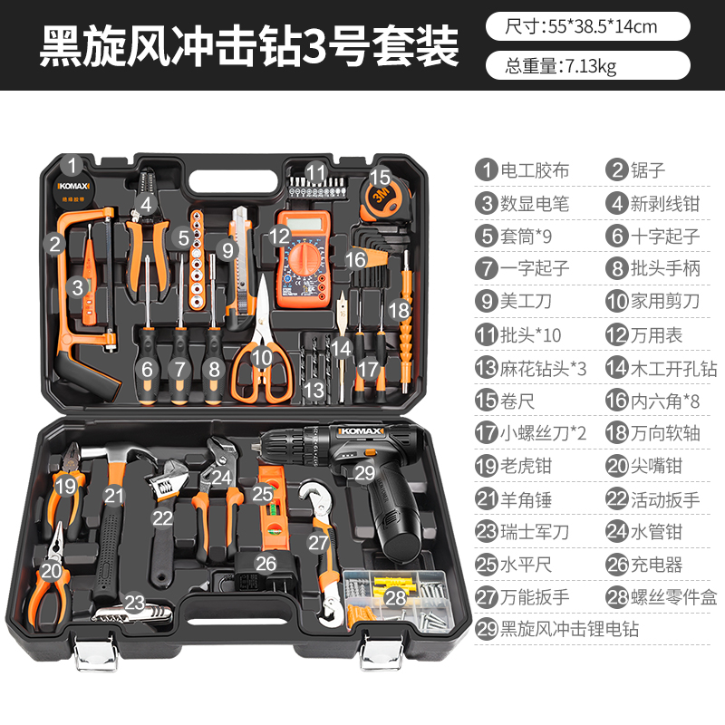 Comax household multi-function electric screwdriver impact drill Rechargeable flashlight drill Electric toolbox pistol drill