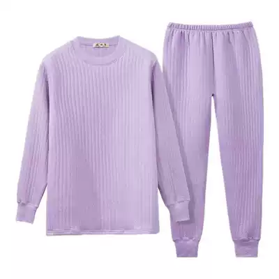Middle-aged and elderly thickened thermal underwear suit women plus fat three-layer cotton round neck mother thick autumn clothes sanitary pants