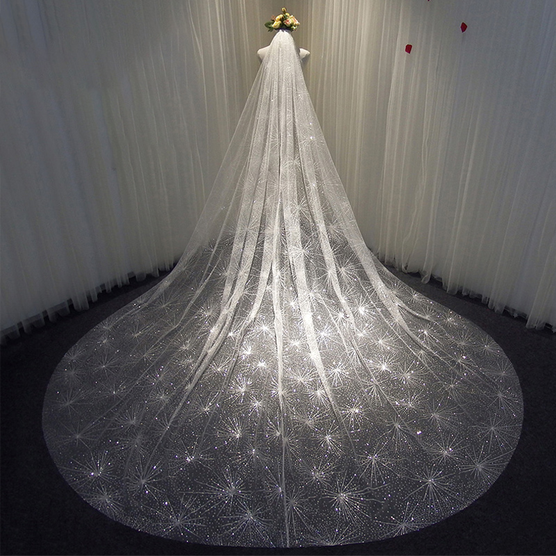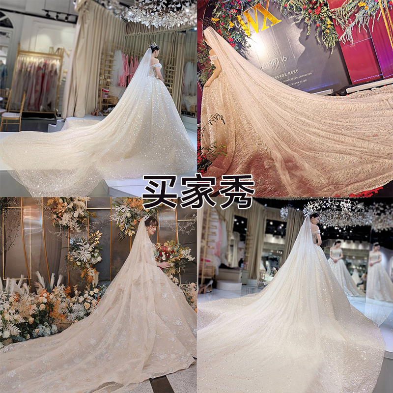 Extra long trailing veil Bride main wedding dress Champagne color French license Wedding mopping cover wedding headdress