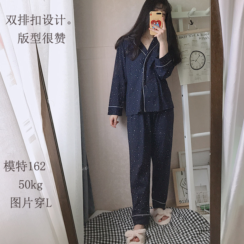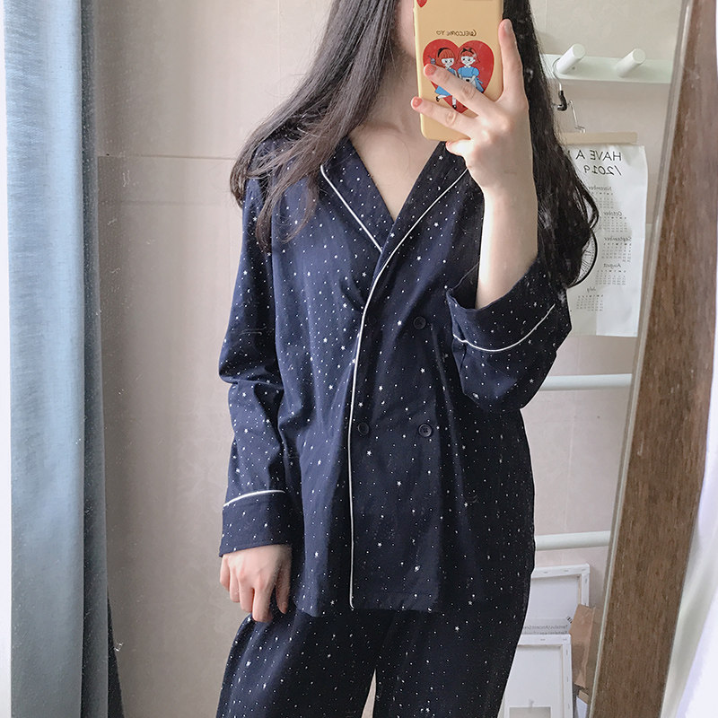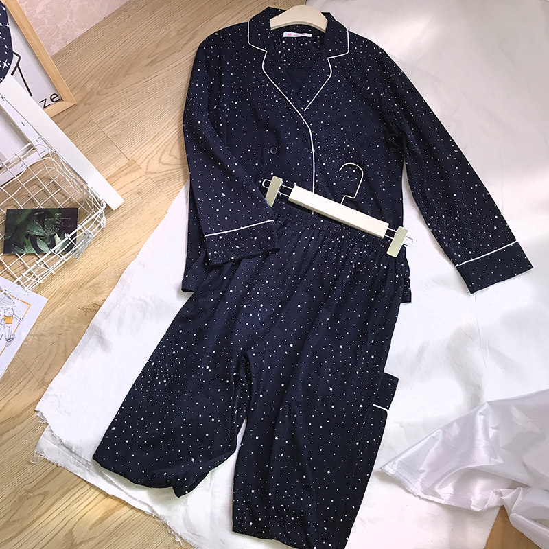 ins long-sleeved pajamas women's pure cotton vibrato net red the same autumn and winter starry sky home service Korean Japanese retro