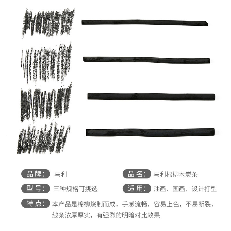 Marley brand cotton willow charcoal strip Sketch pen Special soft carbon lead sketch carbon rod Painting art supplies Sketch sketching Drawing charcoal rod Charcoal strip tool set Artist series
