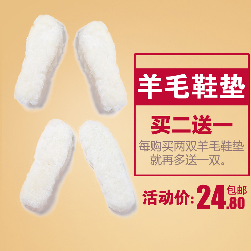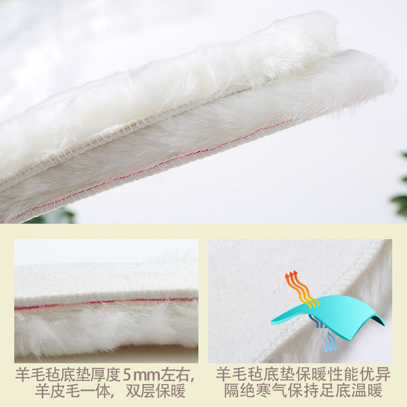 Wool insole fur one warm men's and women's thickening plus velvet breathable sweat-absorbing soft winter snow boots cotton insole