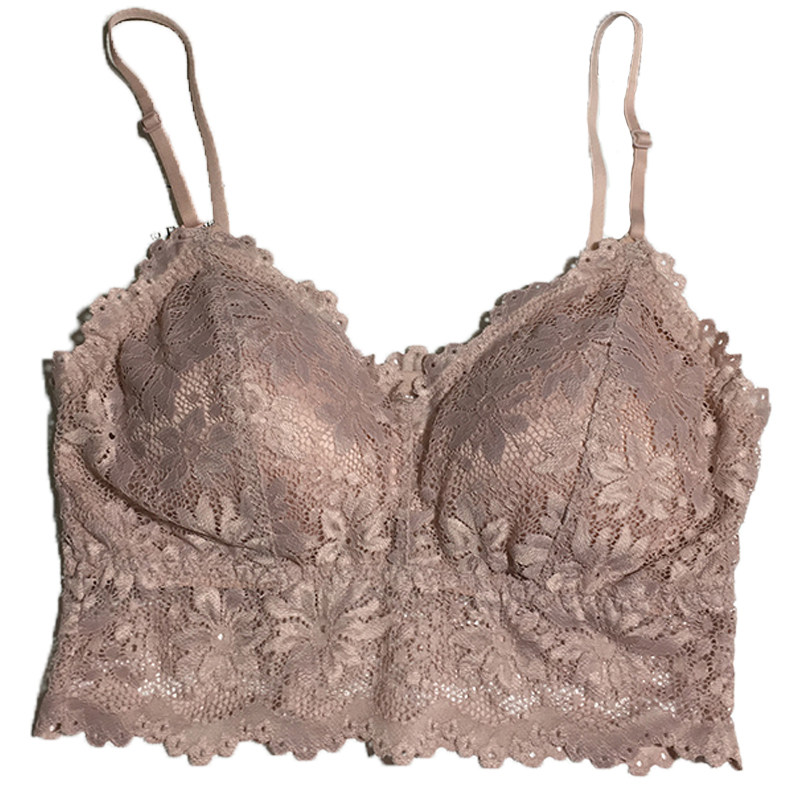 Lace beauty underwear short suspension belt with bras sexy steel-free ring anti-walking band breast mat back hollowed summer wrapped chest woman