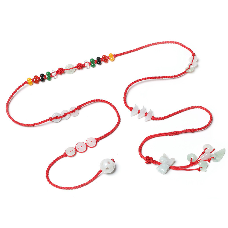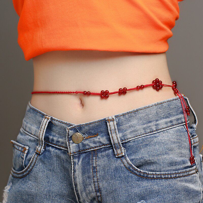 Emerald waist chain Seven colorful red rope emerald waist chain red Manau waist chain small fish with red Manau waist necklace with red Manau waist chain Seven stars with notes waist Size 2 feet to 2-8 feet of pomegranate stone