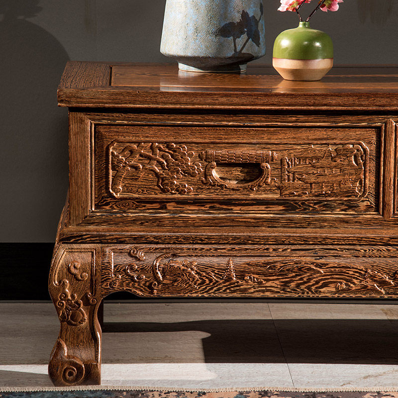 New Chinese mahogany furniture all solid wood TV cabinet chicken wing wood furniture floor cabinet clearance living room storage floor-to-ceiling antique