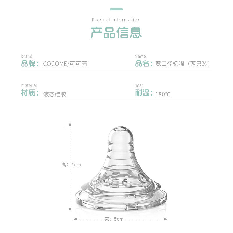 cocome cocoa cute pacifier wide calibre wide mouth soft silicone nipple S type M type L Type 2 only fit