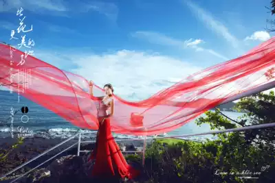Wedding photography props Red chiffon cloth travel sea view props Red satin red cloth Chinese style red yarn