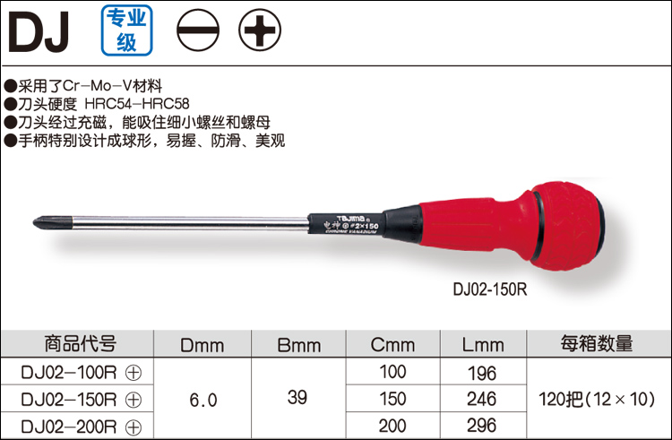tajima tian island cross screw driver cross screwdriver screw opener rubber handle charged head DJ series