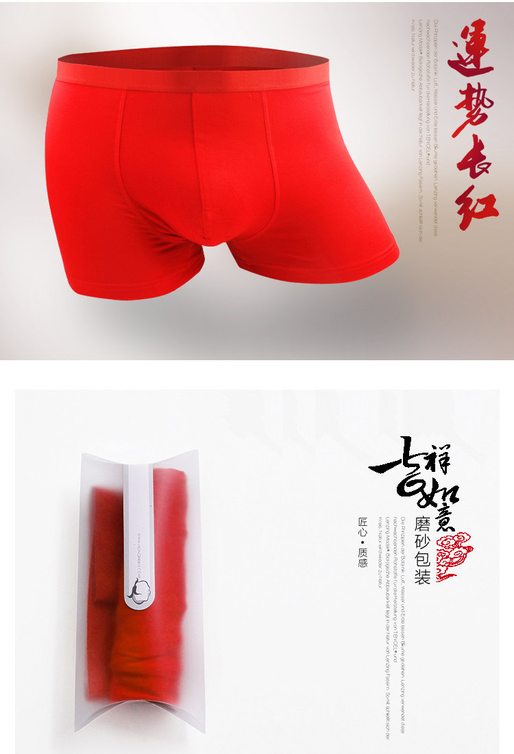 Men's Life Year Red Underwear Blouse Blouse American Long Suede Cotton Pure Cotton Four-corner Shorts