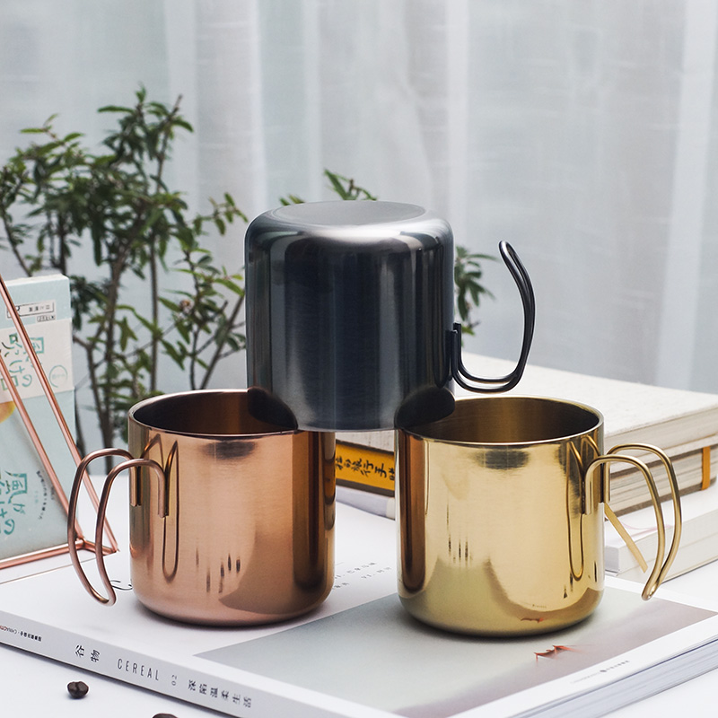 In Japanese-style Nordic Industrial Wind Stainless Steel Gold Coffee Cup Metal Cup Breakfast Cup with lid