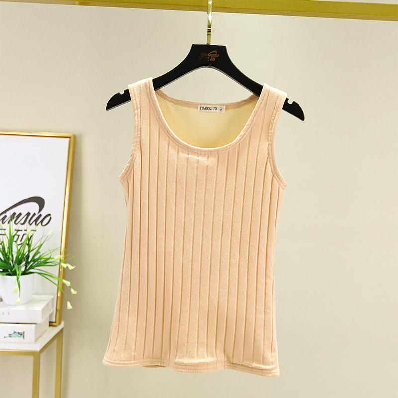 Winter warm fleece vest women's tight-fitting inner wear thickened bottoming shirt cotton body-shaping suspender top large size underwear