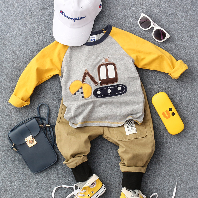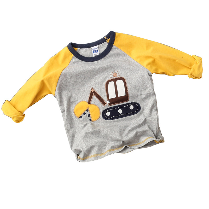 Excavator long sleeve T-shirt stitching Bear T-shirt white