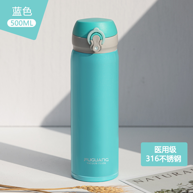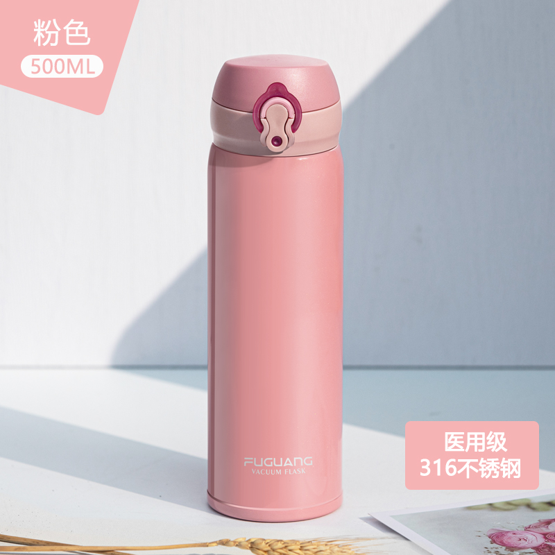 Fuguang thermos cup men and women portable 304 stainless steel student simple bouncing cover water cup bottle large capacity 500ml
