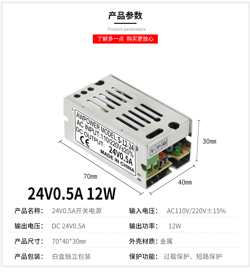 12V1A 12W5V2A10A12V1 25A15W24V0 5A switching power supply LED power supply DC transformer