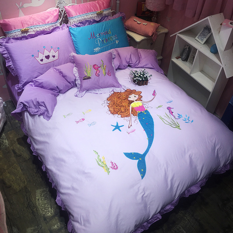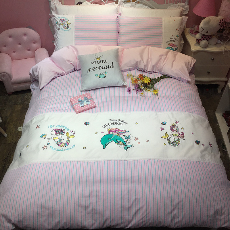 Pink girl princess room 13372 cotton active cloth sticker embroidery four-piece set of children's cartoon single double bed