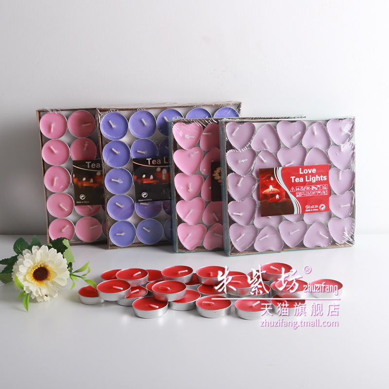 Pink round candle a box of yellow round candles a box of white round candles a box of purple round candles a box of blue round candles a box of red round candles