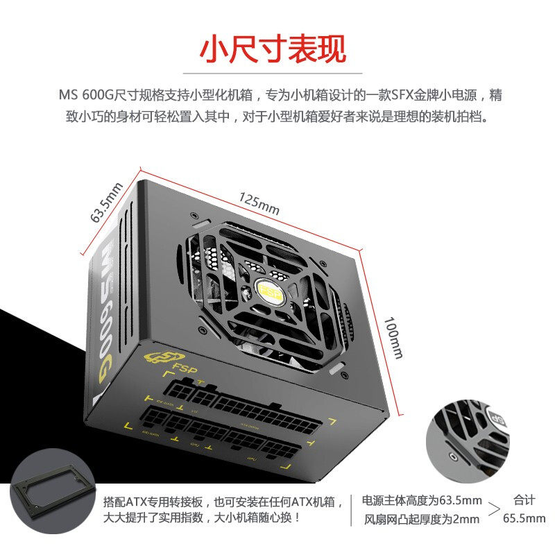 Full Han Classic Edition MS450 500 650G Rated 450W 500W 650W 750W Gold Medal Full Module SFX Desktop ITX Computer Mini Chassis Bronze Small Power Supply