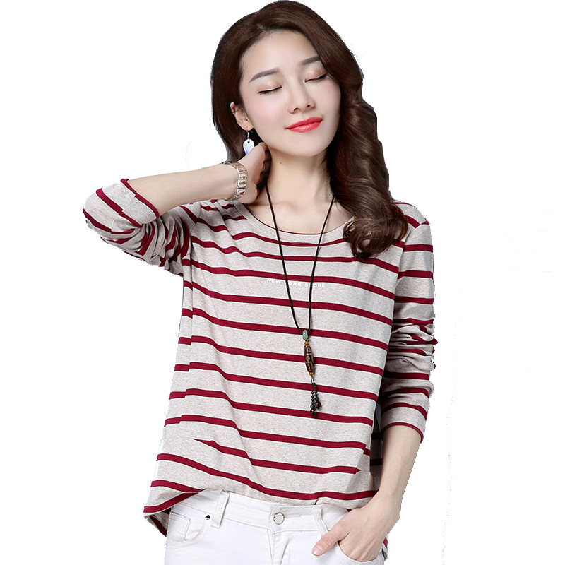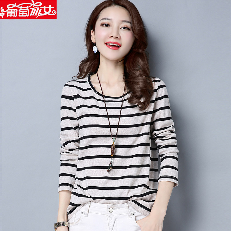 Striped T-shirt women's Korean version loose spring 2021 new cotton long-sleeved inner jacket wild large size women's top