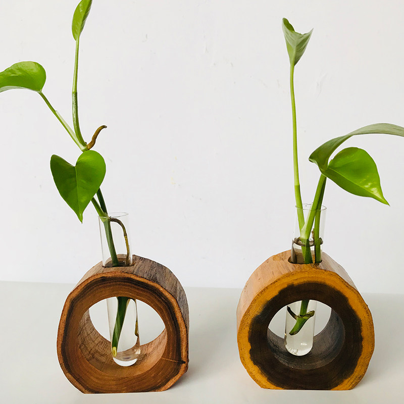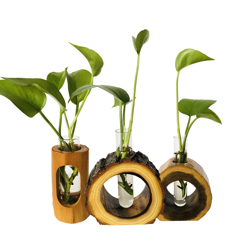 Japanese style flower arrangement Simple solid wood flower creative water culture green carrot flower pot Glass Vase Office desktop