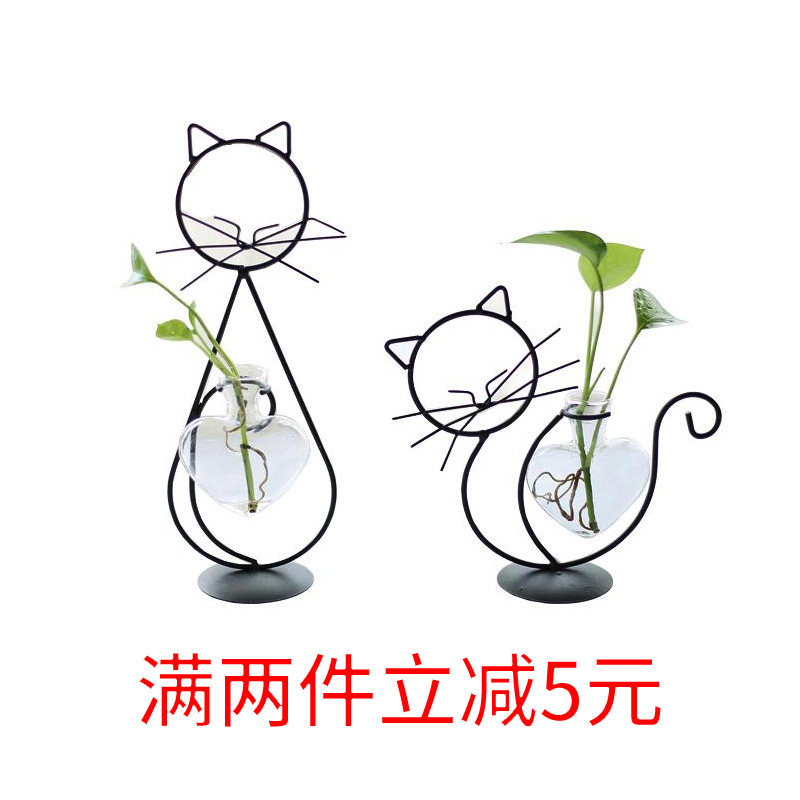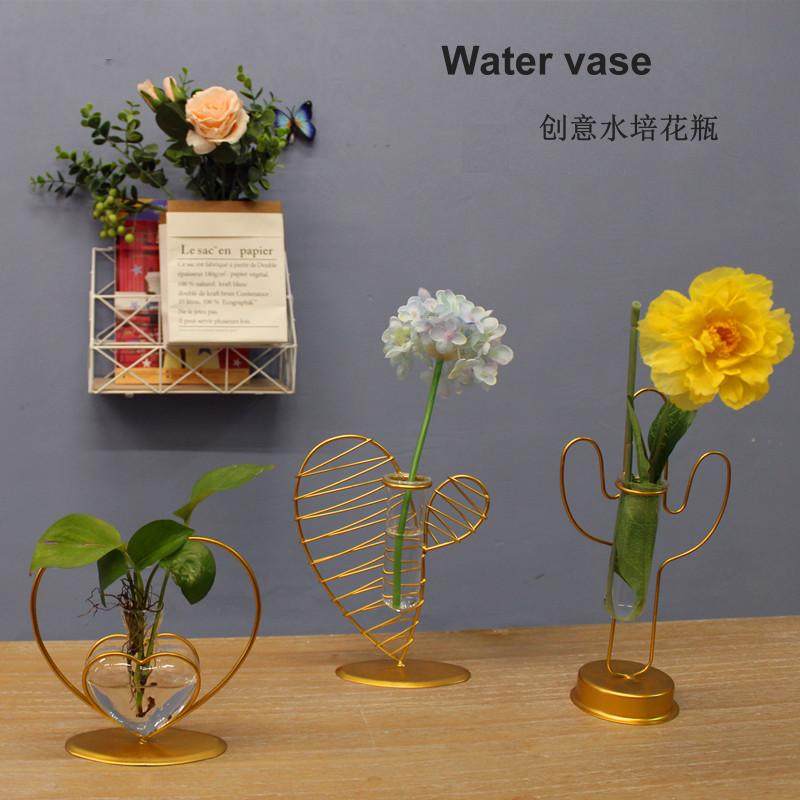 Iron art hydroponic glass bottle vase ins wind small fresh swing piece creative gold Ge bronze money grass living room home decoration