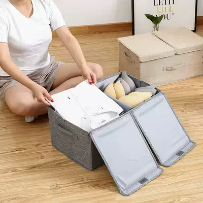 Washable folding clothes storage box cloth art covered double compartment storage box large finishing box wardrobe storage box