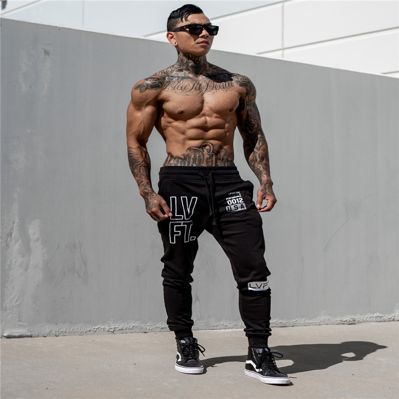 Muscle fitness dog brothers sports pants men's slim closed running training long pants small feet pants outdoor stretch
