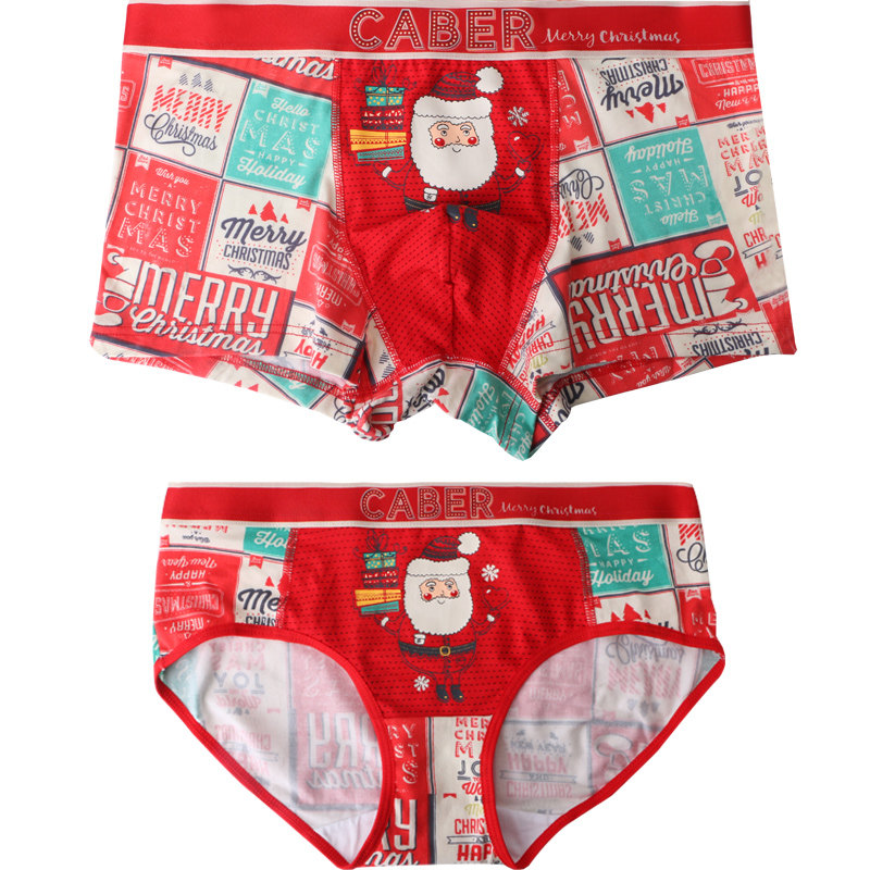 caber carabiliary couples underwear Christmas cartoon gift box cute cotton red ben year suit women's flat corner