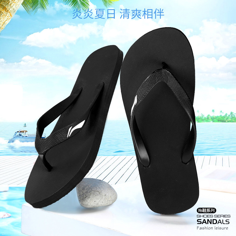 Li Ning Herringbone Slippers Beach Shoes Summer Men Breathable Women Outdoor Swimming Non-slip Outside Wearing Sandals Sports Cool Tug