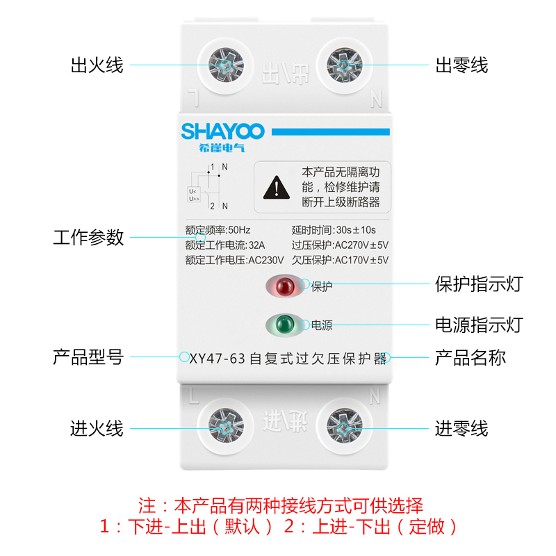 Automatic protector lightning protector 2P220V when self-duplex overpressure protector home overpressure over calendering