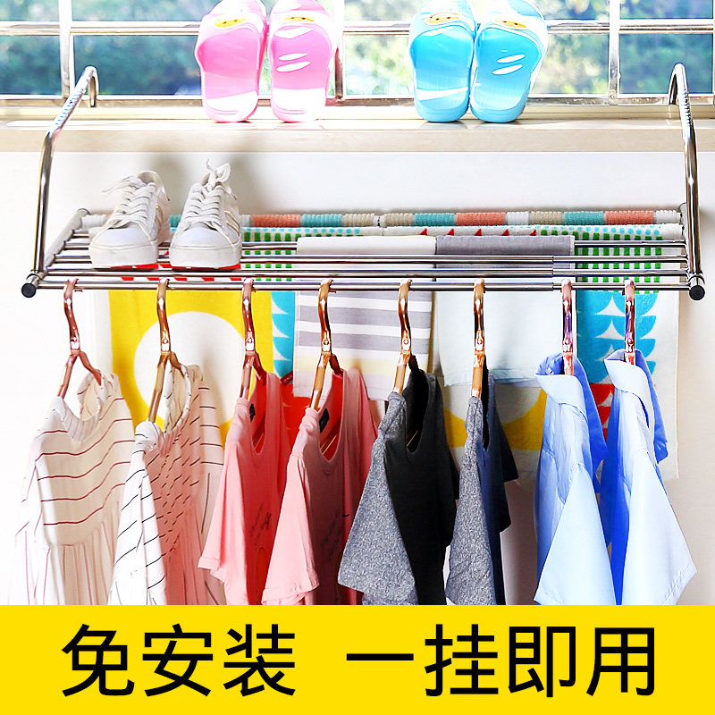 Stainless steel window small drying rack Window sill drying shoe rack Folding hanging drying storage rack Window balcony drying rack