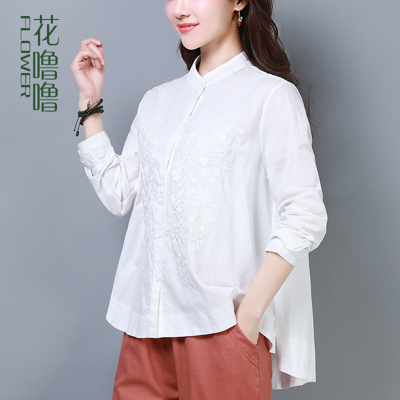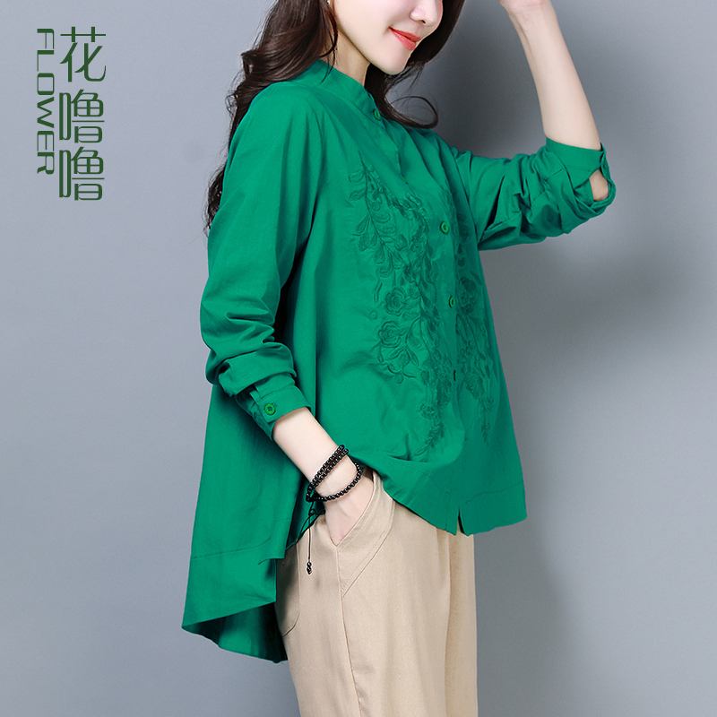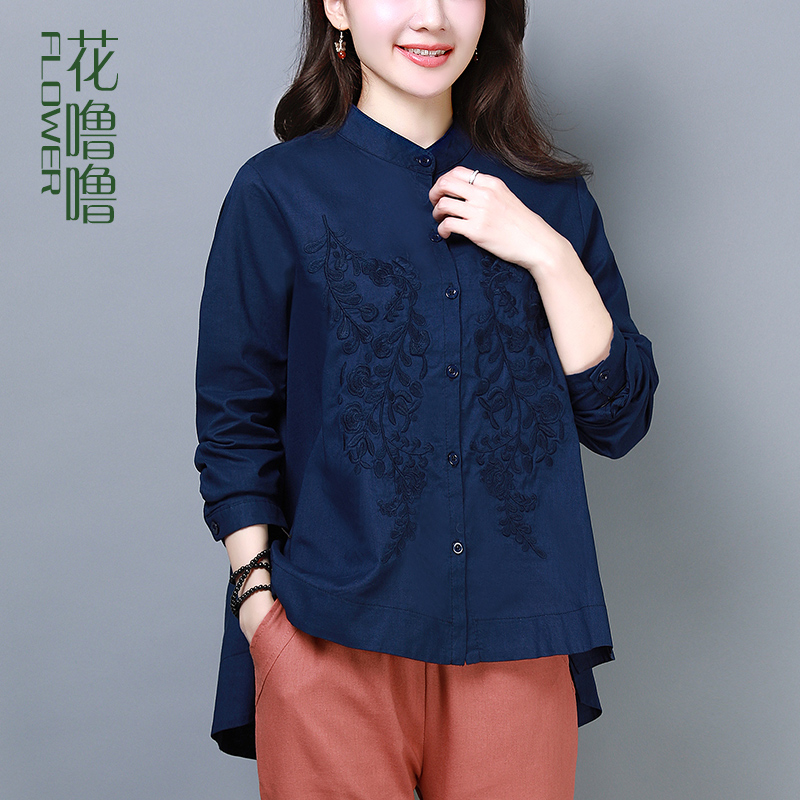 Cotton linen blouse Women 2022 New loose cover Belly Spring Dress Mid age Mom Long sleeve T-shirt for older moms