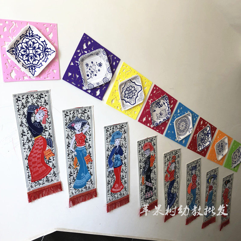 Green flower porcelain paper tray one square large flower unwoven fabric color random one square unwoven cloth red One square unwoven cloth yellow One square unwoven cloth blue One square unwoven fabric green One square unwoven
