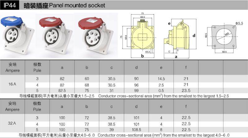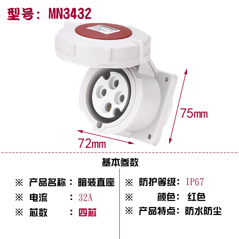 MN3432 Zhejiang Guang ManMNIEKNES three-phase four-wire 380V-core industrial aviation concealed socket