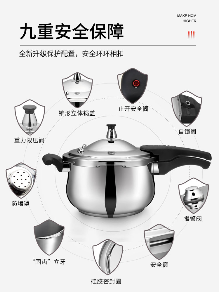 Zhongbao 304 stainless steel pressure cooker Household gas explosion-proof small pressure cooker thickened induction cooker universal