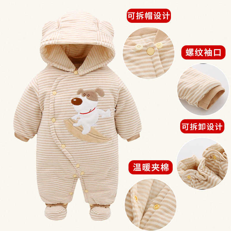 Newborn baby one-piece clothes autumn and winter going out hugging clothes cotton-padded clothes with feet baby winter clothes thickening cotton clothes to wrap feet