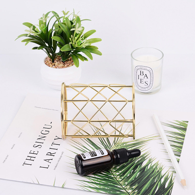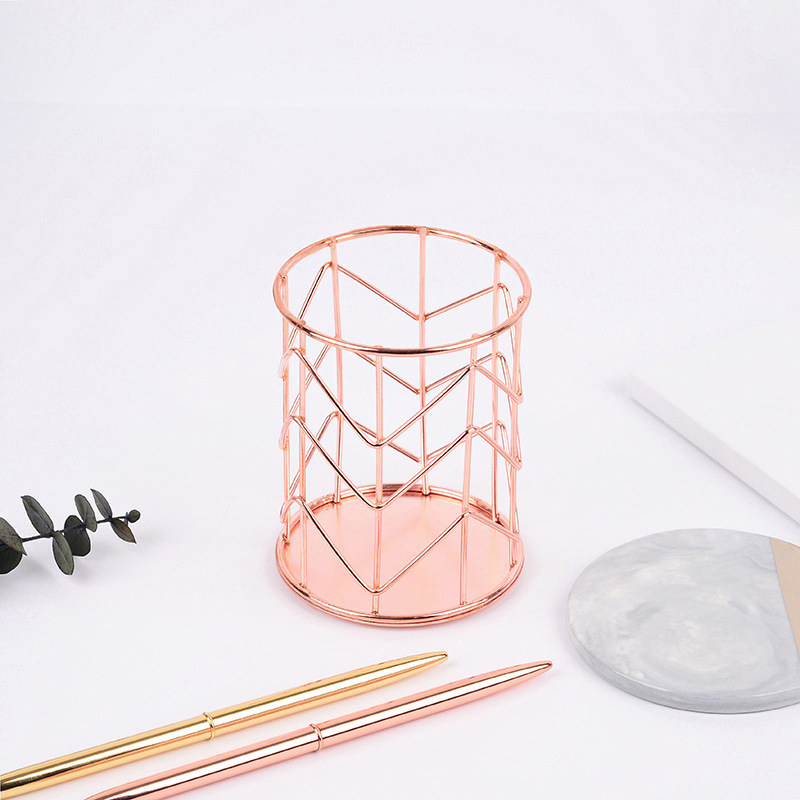 Nordic ins golden pen holder wave pattern rose gold iron pen holder office storage basket simple tableware storage holder