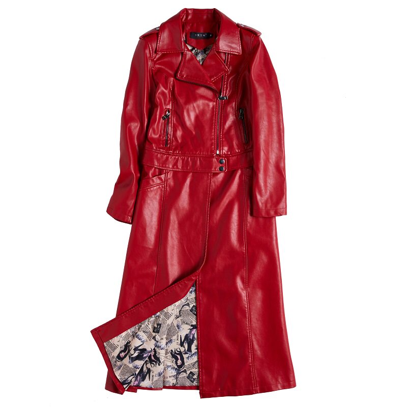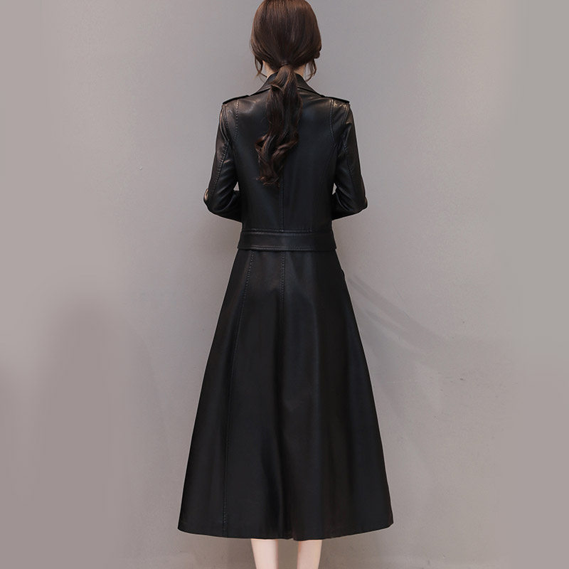 2022 autumn new Haining leather jacket women's mid-length thickened sheepskin leather coat over-the-knee leather windbreaker trendy