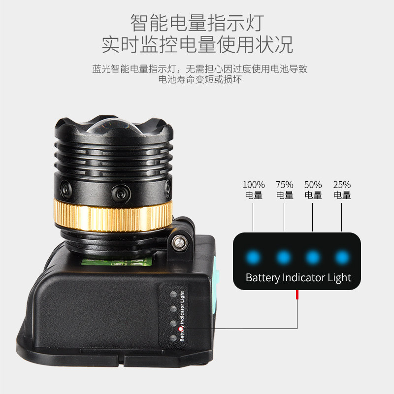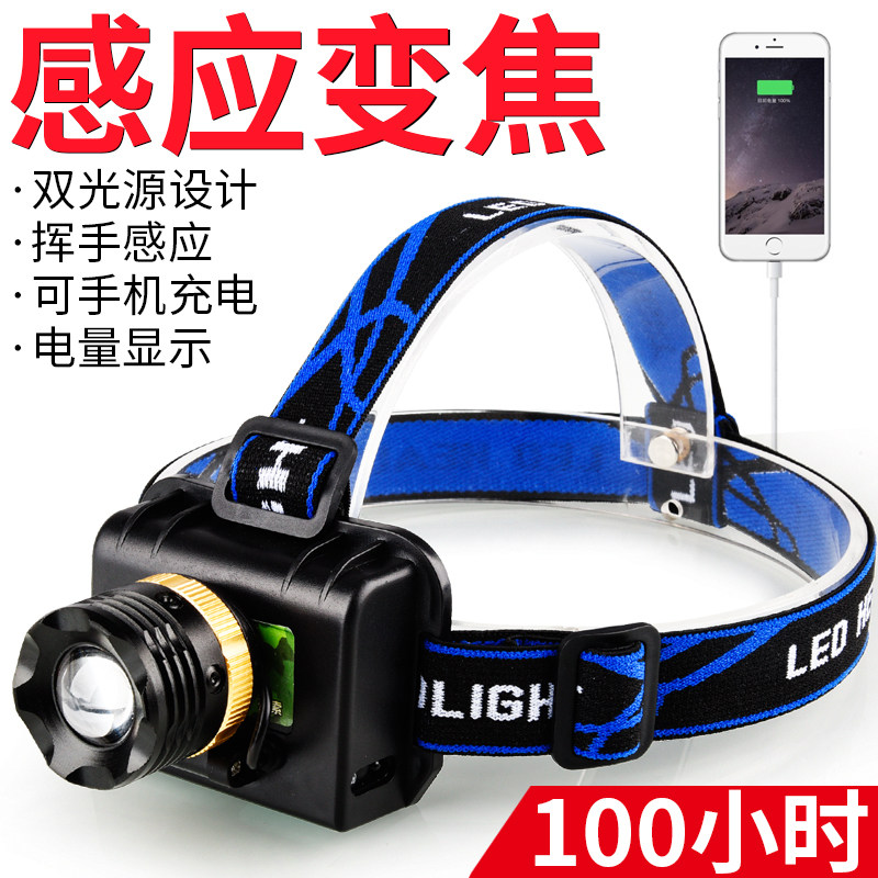 LED headlamp strong light charging waterproof induction zoom 3000 head-mounted meter flashlight Super bright night fishing mine light