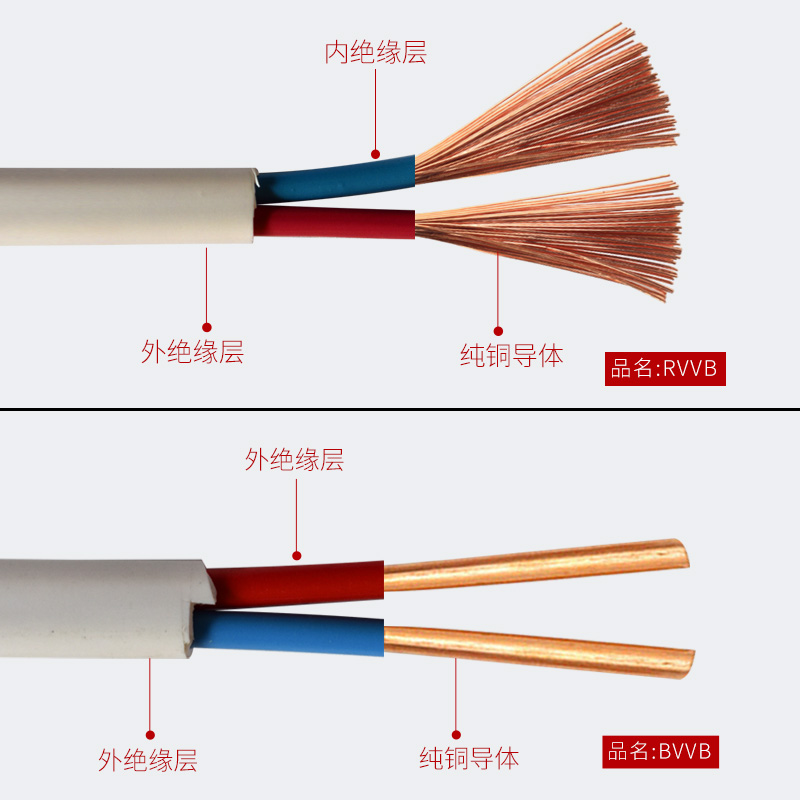 Wire BVVB2 Core 2 5 squared national standard 1 5 4 6 jacket wire double-core copper-wire home cable power cord