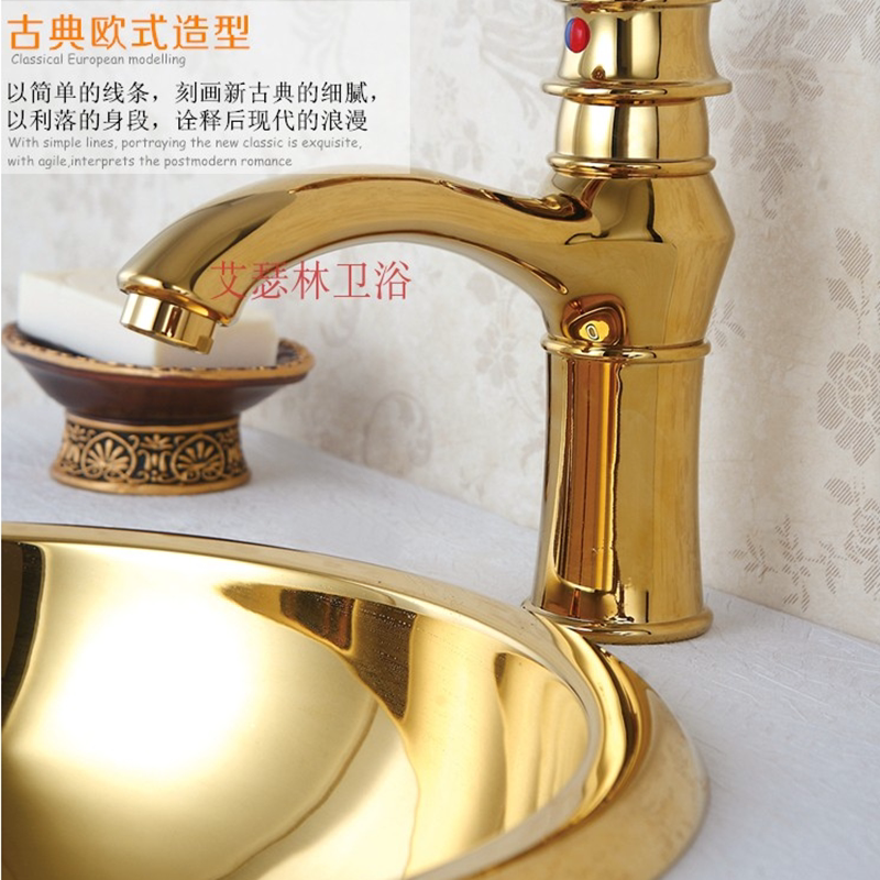 European-style countertop golden washbasin all-copper washbasin hotel art basin powder room creative washbasin round