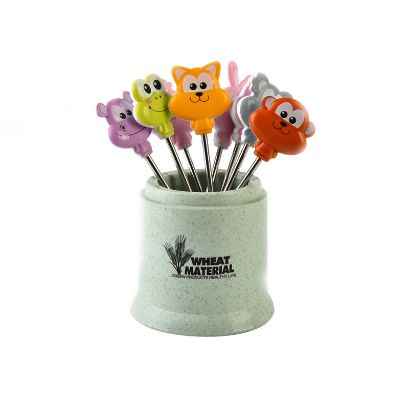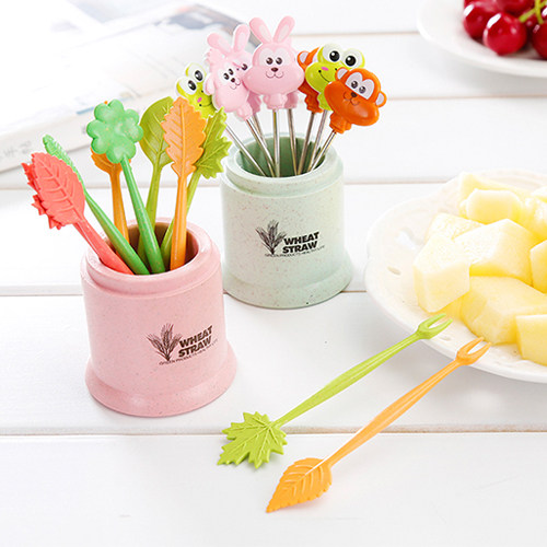 Creative cartoon fruit fork set ceramic stainless steel small fork sweet fork cute portable fruit stick cake fork
