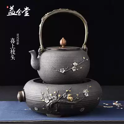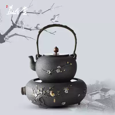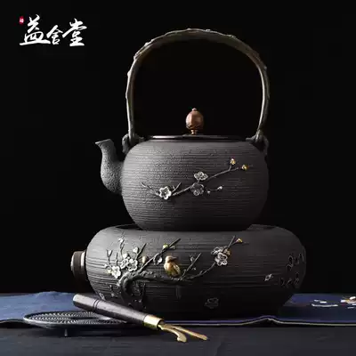 Home Japanese iron pot uncoated gilt cast iron pot tea pure hand boiled water boiled tea black crystal furnace set
