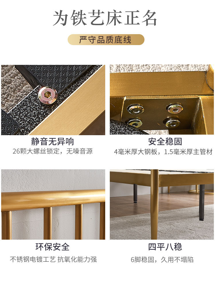 Titanium gold stainless steel pine wood rib cage Titanium gold stainless steel single bed + CD06E brown mattress Nano gold carbon steel pine wood rib cage Titanium gold stainless steel single bed + CD06RJ double-sided luxury mattress