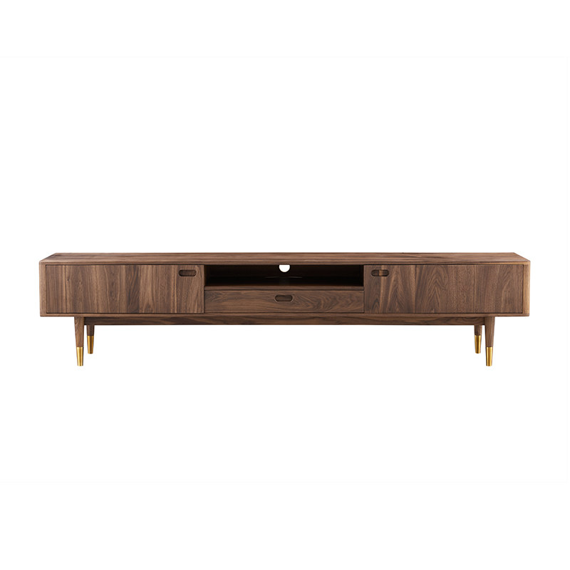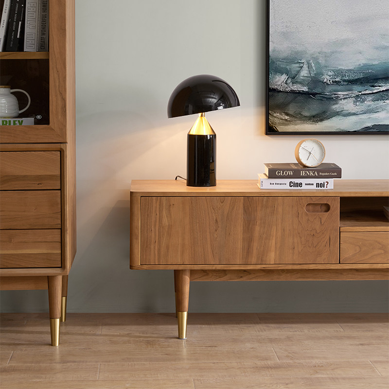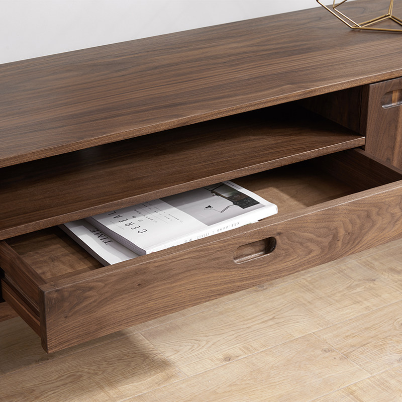 Black walnut TV cabinet Nordic modern minimalist solid wood audio-visual light luxury living room storage storage short side several machines against the wall