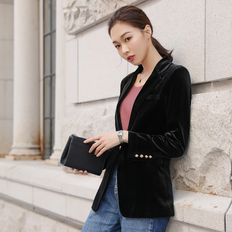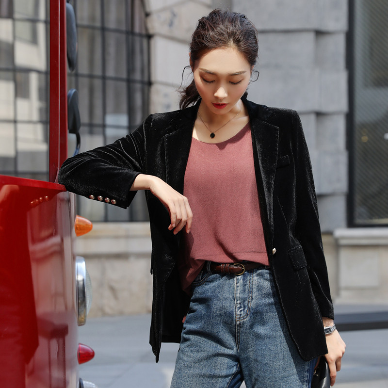 Velvet spring and autumn Korean version of gold velvet small suit jacket women's suit net red blue suit tailored casual top