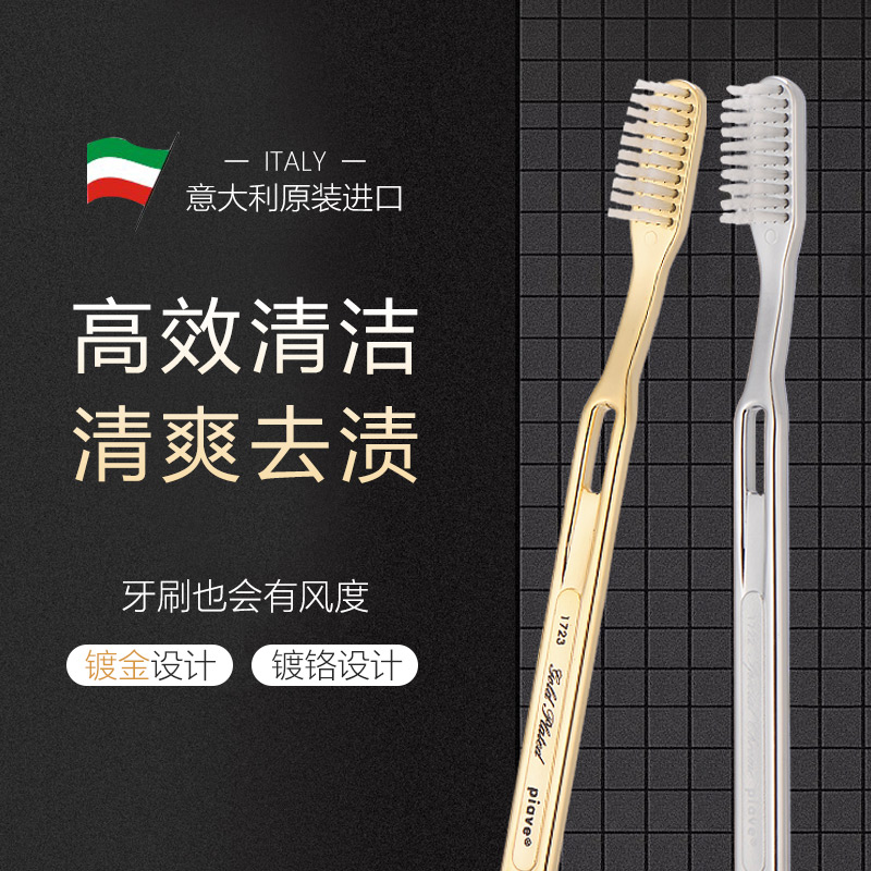 Italy imported silver guard crown Piave Piave medium bristle toothbrush Men's special gold-plated chrome